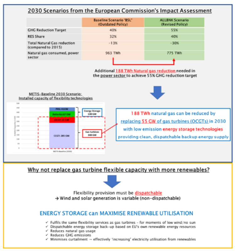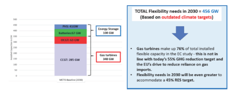 圖11根據(jù)歐盟影響評(píng)估和歐盟儲(chǔ)能研究的數(shù)據(jù),2030年電力部門(mén)使用可再生能源和儲(chǔ)能系統(tǒng)替代天然氣發(fā)電廠。以實(shí)現(xiàn)靈活備用電源的基本原理概述。