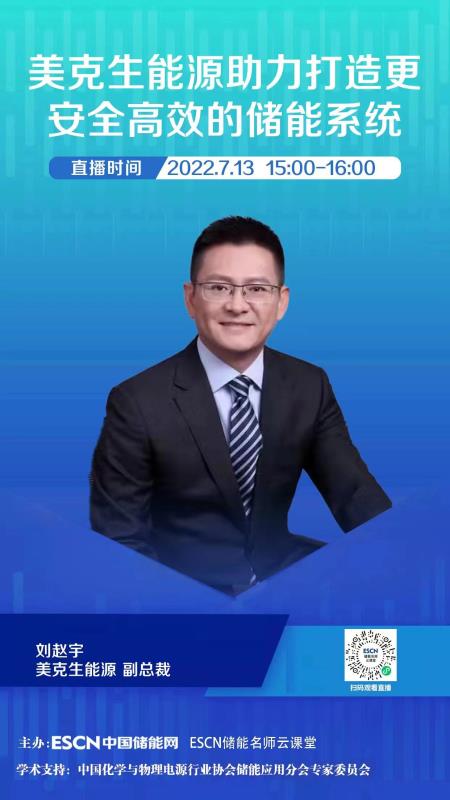 7月13日下午15:00-16:00,中國儲能網(wǎng)邀請美克生能源副總裁劉趙宇做客“ESCN儲能名師云課堂”(在線直播),為大家分享《打造更安全高效的儲能系統(tǒng)》主題報(bào)告。歡迎業(yè)界同仁在線學(xué)習(xí)與交流。