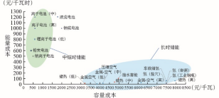 圖5 各類儲能技術單位儲能能量成本與容量成本