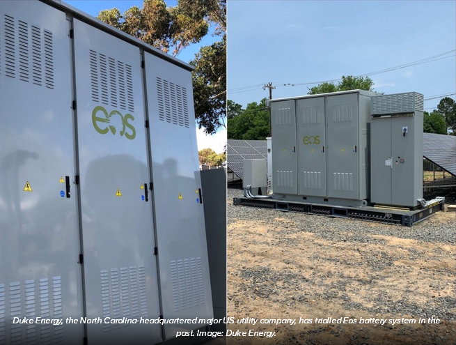 杜克能源公司曾試用過(guò)Eos電池儲(chǔ)能系統(tǒng)