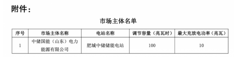 公示期間,市場(chǎng)有關(guān)方面未提出異議,該獨(dú)立儲(chǔ)能設(shè)施在山東電力交易中心的注冊(cè)手續(xù)自動(dòng)生效,名單見附件。