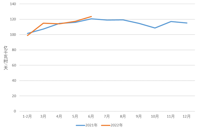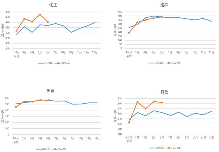 1-6月,化工行業(yè)用電量2688億千瓦時,同比增長4.9%;建材行業(yè)用電量1880億千瓦時,同比下降4.6%;黑色金屬冶煉行業(yè)用電量3138億千瓦時,同比下降2.8%;有色金屬冶煉行業(yè)用電量3645億千瓦時,同比增長2.1%。