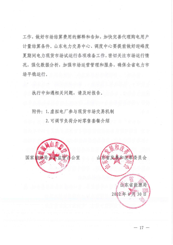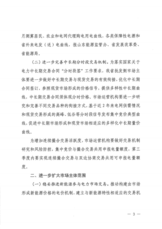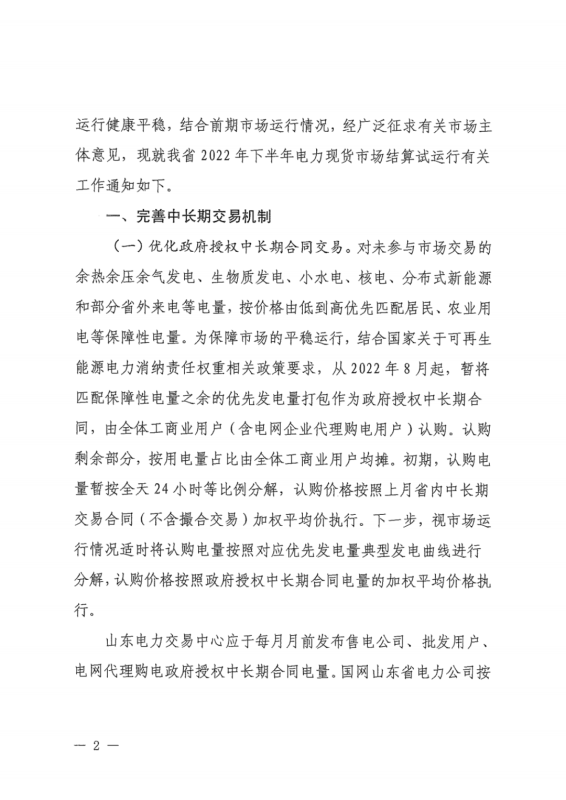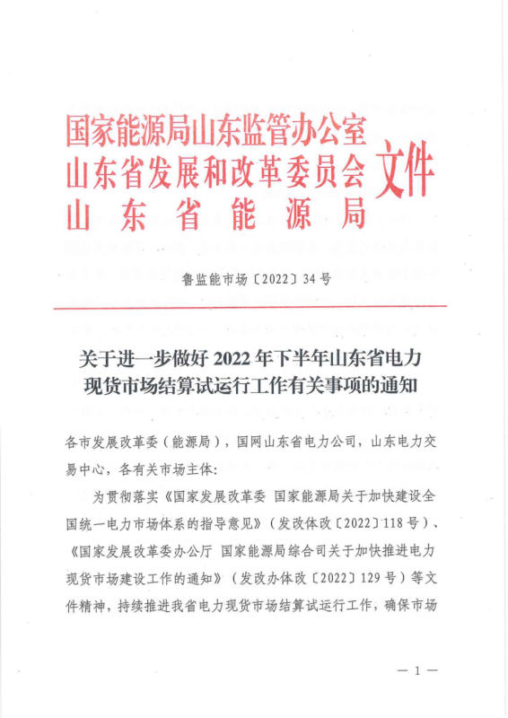 中國(guó)儲(chǔ)能網(wǎng)訊:6月30日,山東正式印發(fā)《關(guān)于2022年山東省電力現(xiàn)貨市場(chǎng)結(jié)算試運(yùn)行工作有關(guān)事項(xiàng)的補(bǔ)充通知》,《通知》要求,進(jìn)一步擴(kuò)大市場(chǎng)主體范圍,推動(dòng)將優(yōu)先發(fā)購(gòu)電計(jì)劃轉(zhuǎn)化為政府授權(quán)中長(zhǎng)期合同,未參與市場(chǎng)交易的余熱余壓余氣發(fā)電、生物質(zhì)發(fā)電、小水電、核電、分布式新能源和部分省外來(lái)電等電量,按價(jià)格由低到高優(yōu)先匹配居民、農(nóng)業(yè)用電等保障性電量。穩(wěn)妥推進(jìn)新能源參與電力市場(chǎng)交易,推動(dòng)構(gòu)建由市場(chǎng)形成新能源價(jià)格的電價(jià)機(jī)制,以差價(jià)合約形式參與電力市場(chǎng)交易,支持新能源項(xiàng)目與配套建設(shè)儲(chǔ)能聯(lián)合作為一個(gè)發(fā)電企業(yè)主體參與市場(chǎng)結(jié)算。