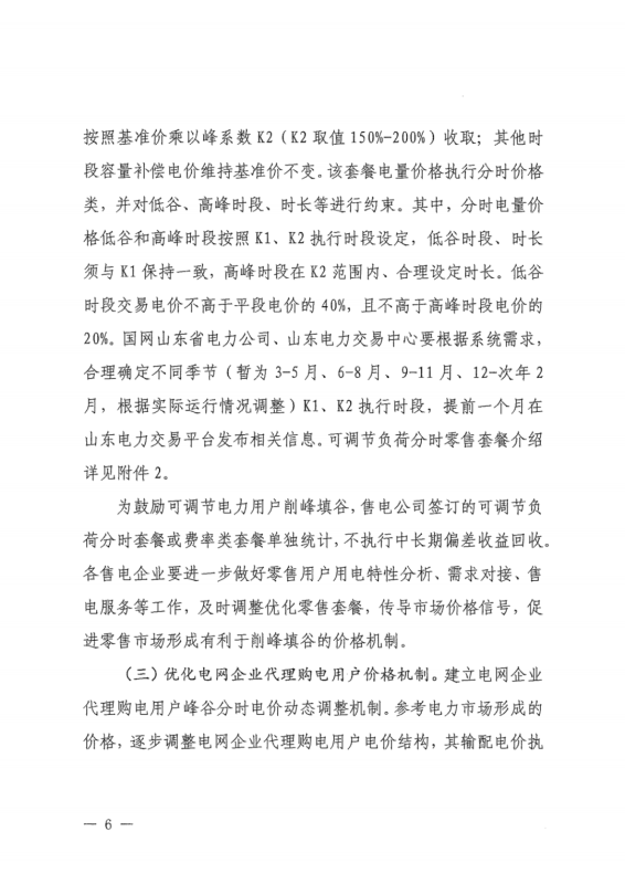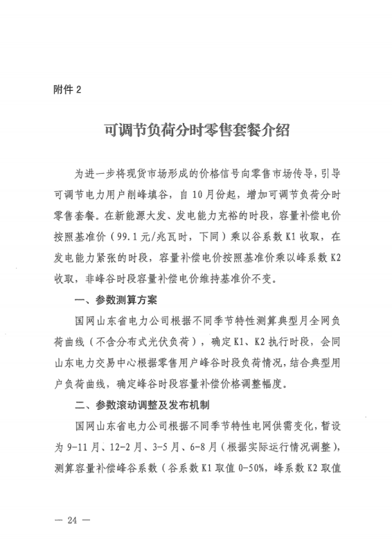 另外需要注意的是,該文件創(chuàng)新性的提出可調(diào)節(jié)負(fù)荷分時(shí)零售套餐。即在新能源大發(fā)、發(fā)電能力充裕的時(shí)段,容量補(bǔ)償電價(jià)按照基準(zhǔn)價(jià)(99.1元/兆瓦時(shí),下同)乘以谷系數(shù)K1(K1取值0-50%)收?。辉诎l(fā)電能力緊張的時(shí)段,容量補(bǔ)償電價(jià)按照基準(zhǔn)價(jià)乘以峰系數(shù)K2(K2取值100%-160%)收取。