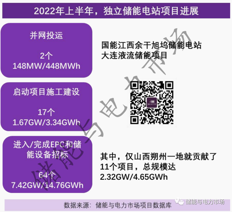 中國儲能網(wǎng)訊:2022年上半年期間,獨立儲能電站規(guī)劃和開發(fā)如火如荼,但與之形成對比的是,投運項目卻寥寥無幾。具體來看,上半年并網(wǎng)投運的獨立儲能電站共2座、啟動施工建設的項目共17個、進入/完成EPC和儲能設備招標的項目共64個,總計規(guī)模9.24GW/18.55GWh。