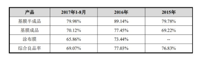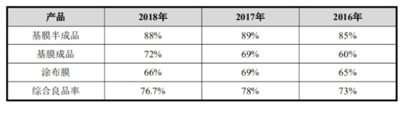 上海恩捷鋰電池隔膜產(chǎn)品的良品率(驗(yàn)收合格率)