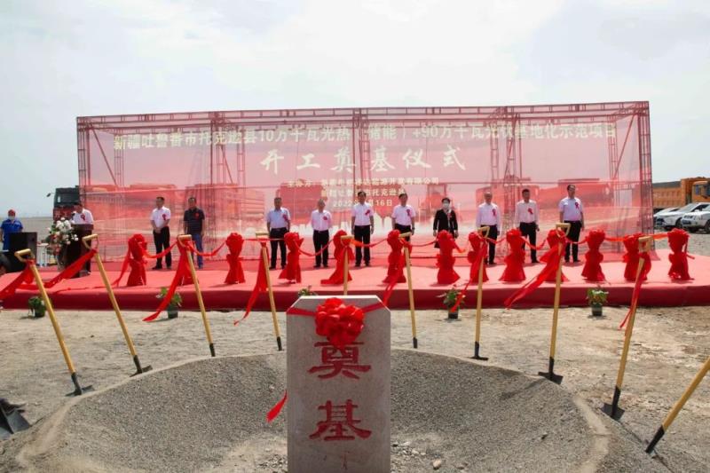 托克遜縣光伏示范項目由中國電建所屬中南院、水電一局EPC總承包,總裝機(jī)容量1000兆瓦,包括100兆瓦光熱儲能,配套900兆瓦光伏發(fā)電,項目用地面積共計249.83公頃。