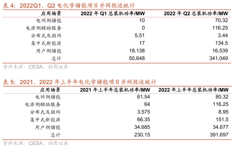 2021年,國內(nèi)新型儲能新增裝機容量2.4GW,累計容量達到5.7GWh,同比增加75%(主要為電化學儲能)。2022年上半年完成電化學儲能裝機約0.4GW,同比增加70%。結(jié)構(gòu)上,大部分仍然集中在電源側(cè)。