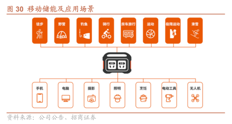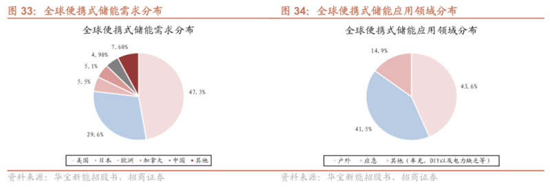 便攜式儲能是近幾年興起的新興細分市場,下游應用領域主要是戶外活動(露營等)、應急領域(日本需求較大)等,需求也主要集中在歐美和日本。近2年國內(nèi)疫情導致國內(nèi)的城市近郊露營需求大幅提升,也在帶動便攜式儲能需求的快速提升。