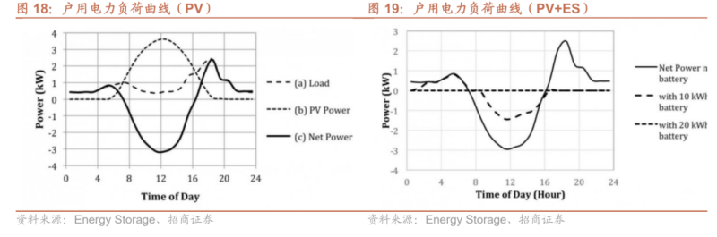 不附加儲能的情況下,電網(wǎng)的風光消納閾值在15%上下,當風光滲透率由20%向上提升將會造成系統(tǒng)凈負荷的波動幅度、劇烈程度陡增。電網(wǎng)穩(wěn)定性造成的消納能力弱化是新能源消納的潛在制約因素,大規(guī)模儲能配置成為新能源發(fā)電滲透率進一步提升的必然選擇。此外,海外用戶側(cè)光伏儲能的一體模式是發(fā)展較快的方向,在能源價格上漲、電池成本下降和循環(huán)次數(shù)提升的背景下,戶儲逐步具備經(jīng)濟性。