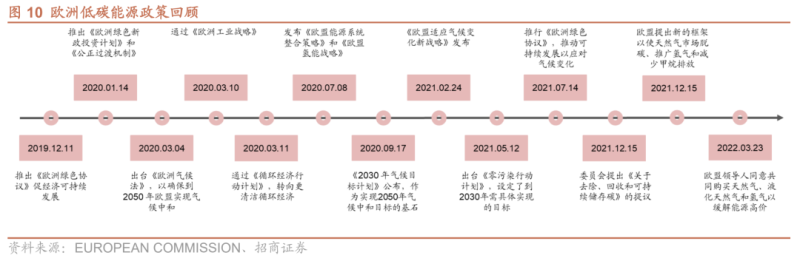 相較Ff55等往期政策,REPowerEU行動目標更加積極,在維持過去2030年減少55%溫室氣體排放、2050年實現(xiàn)氣候中和預期不變的前提下,調(diào)升2030年可再生能源整體目標由40%至45%。REPower EU方案是俄烏危機后提出的,是針對歐洲地緣政治與歐洲能源危機進行的方向性、長期性的調(diào)整和選擇。
