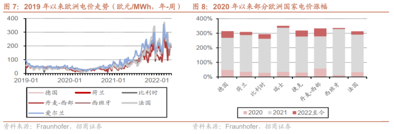 2022年俄烏危機進一步加劇歐洲能源供需的惡化。歐洲天然氣、煤炭化石能源價格大幅上升,用能成本陡增,同時面臨斷供壓力。