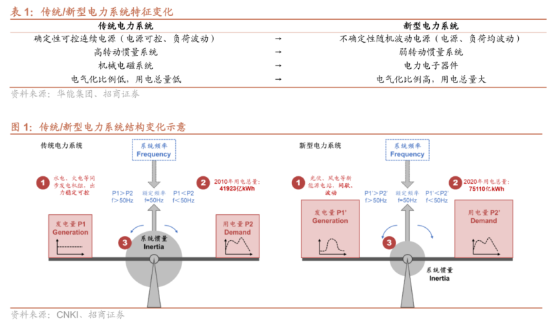 新型電力系統(tǒng)的構(gòu)建過程中,發(fā)電側(cè)體現(xiàn)為風電、光伏等可再生能源占比持續(xù)提升,這將造成兩大挑戰(zhàn),一是發(fā)電側(cè)間歇性、波動性加大,發(fā)/用電失衡概率大幅提升;二是電力系統(tǒng)可調(diào)容量、慣量下降,系統(tǒng)應對失衡的能力弱化。