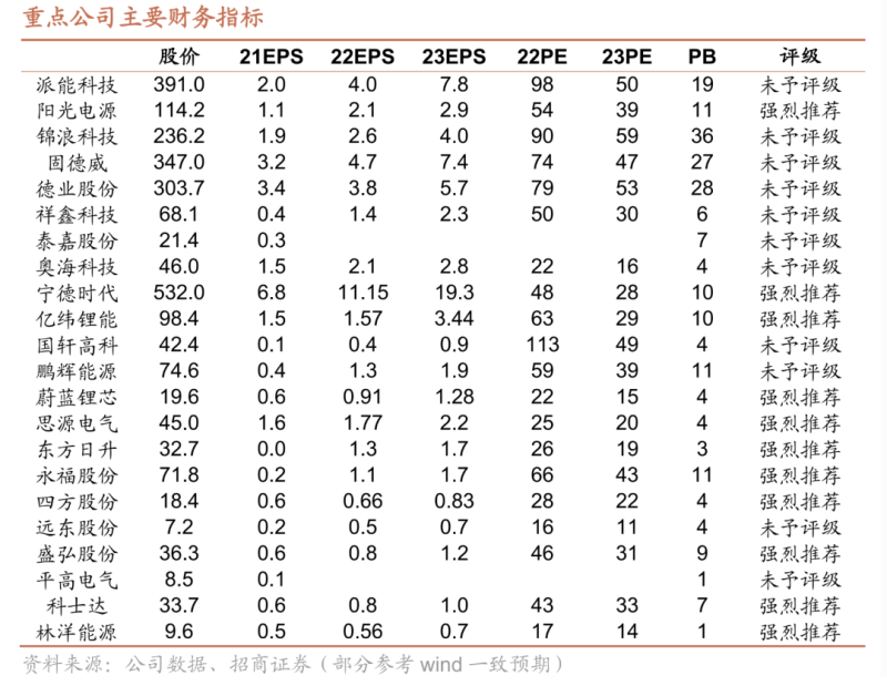 推薦與關注派能科技、陽光電源、錦浪科技、固德威、德業(yè)股份、祥鑫科技、泰嘉股份、奧海科技、寧德時代、億緯鋰能、國軒高科、鵬輝能源、蔚藍鋰芯、思源電氣、東方日升、永福股份、四方股份、遠東股份、盛弘股份、平高電氣、科士達、林洋能源。