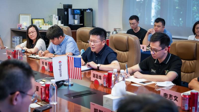 調(diào)研期間,雙方進(jìn)行了交流座談,陳振豪代表公司向?qū)<覀兘榻B了企業(yè)全球背景、溫控系列產(chǎn)品、技術(shù)、市場(chǎng)及服務(wù)能力。并就電池儲(chǔ)能熱管理話題展開了討論和廣泛交流。