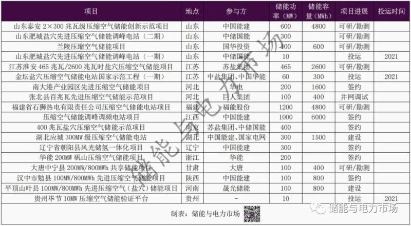 已啟動(dòng)的壓縮空氣儲(chǔ)能項(xiàng)目情況