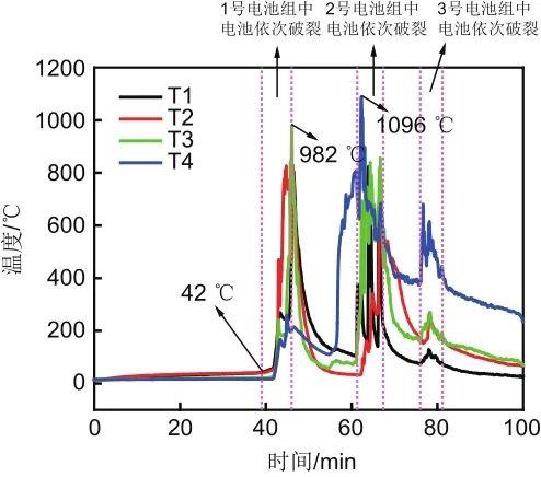 圖 11 多個鋰離子電池組燃燒爆炸溫度變化曲線