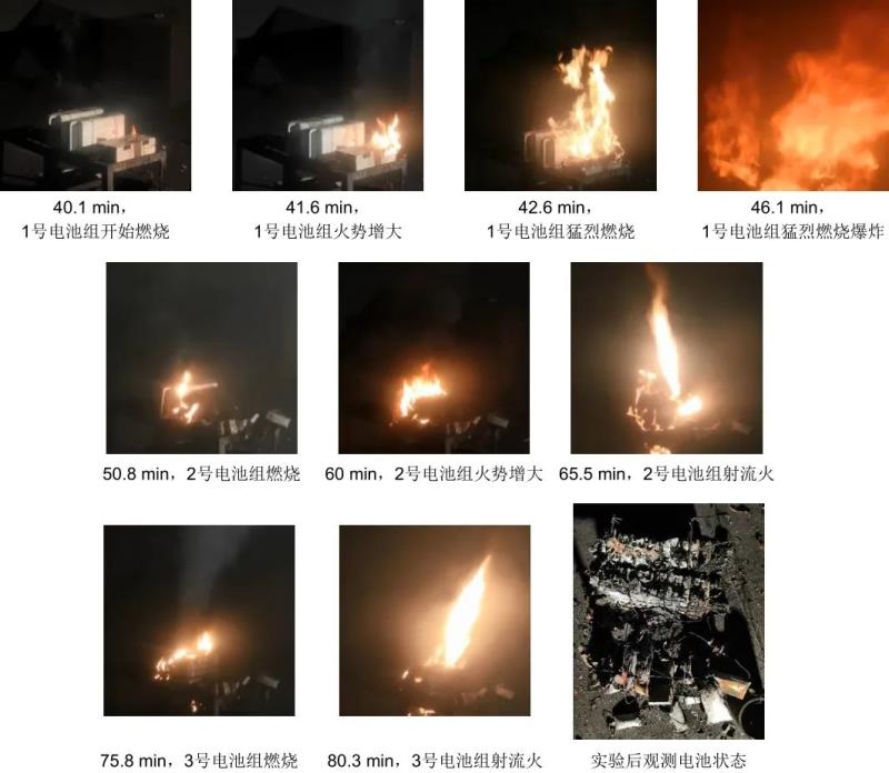 圖 10 多個鋰離子電池組燃燒爆炸實(shí)驗(yàn)照片