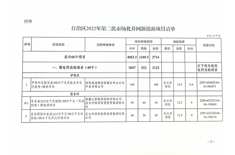 中國(guó)儲(chǔ)能網(wǎng)訊:近日,新疆公布2022年第二批市場(chǎng)化并網(wǎng)新能源項(xiàng)目清單,總計(jì)66個(gè)項(xiàng)目,規(guī)??傆?jì)為40.63GW,其中光伏為27.14GW,風(fēng)電為13.49GW,儲(chǔ)能超6.9GW。其中有32個(gè)項(xiàng)目為近1個(gè)月內(nèi)購(gòu)開工建設(shè)的項(xiàng)目,按照地州及企業(yè)承諾以盡快開工。源網(wǎng)荷儲(chǔ)一體化項(xiàng)目不得向大電網(wǎng)送電。