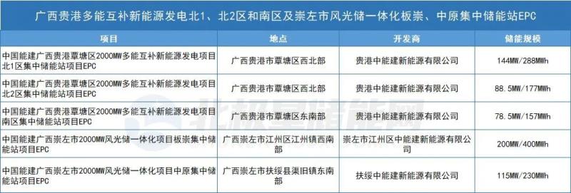 根據(jù)系統(tǒng)初步規(guī)劃,中國能建廣西貴港覃塘區(qū)2000MW多能互補(bǔ)新能源發(fā)電項目和中國能建廣西崇左市2000MW風(fēng)光儲一體化項目將建設(shè)5個儲能站,擬分為5個標(biāo)段進(jìn)行招標(biāo)。在新能源相對集中的北1區(qū)光伏匯集站、北2區(qū)光伏匯集站、南區(qū)光伏匯集站、板崇光伏匯集站、中原光伏匯集站旁分別建設(shè)配套集中儲能電站。其中,北1區(qū)光伏匯集站旁儲能電站規(guī)模144MW/288MWh,北2區(qū)光伏匯集站旁儲能電站規(guī)模88.5MW/177MWh,南區(qū)光伏匯集站旁儲能電站規(guī)模78.5MW/157MWh,板崇光伏匯集站旁儲能電站規(guī)模200MW/400MWh,中原光伏匯集站旁儲能電站規(guī)模115MW/230MWh。最終以接入系統(tǒng)審查意見為準(zhǔn)。儲能電站與光伏匯集站同步建成,儲能系統(tǒng)設(shè)備可隨新能源發(fā)電項目分批同步投建、同步并網(wǎng)。