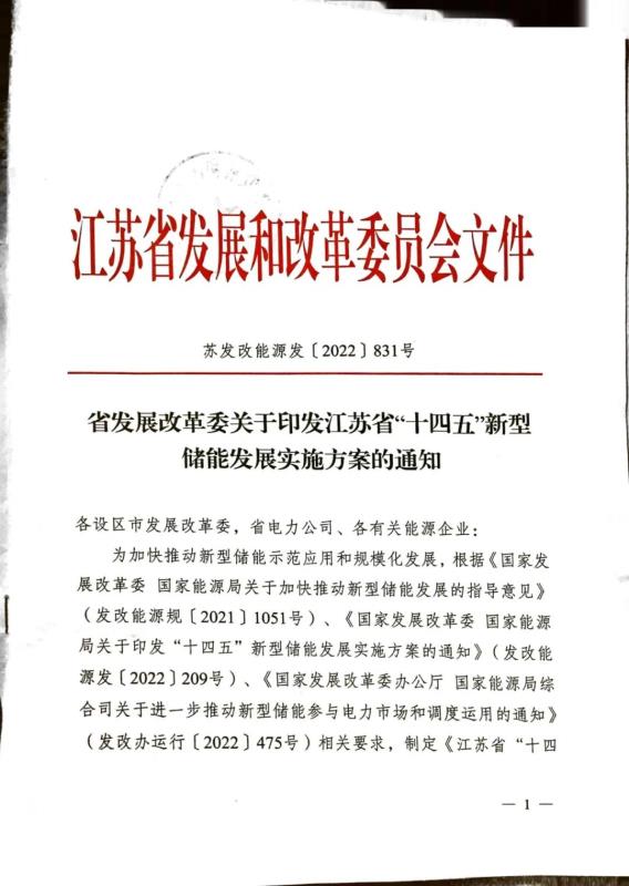 中國儲能網(wǎng)訊:8月8日,江蘇省發(fā)改委正式印發(fā)了《江蘇省“十四五”新型儲能發(fā)展實施方案》。