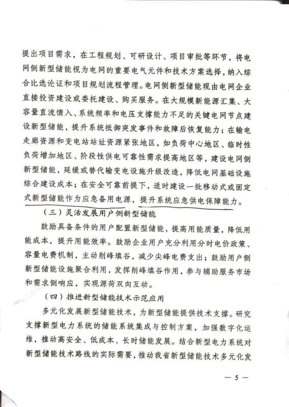 方案指出,到2025年,全省新型儲能裝機規(guī)模達到260萬千瓦左右,鼓勵分布式光伏發(fā)電項目配建儲能電站或購買調峰服務。電源側新型儲能重點發(fā)展方向為建立“新能源+儲能”機制。電網(wǎng)側新型儲能重點發(fā)展方向為電網(wǎng)事故應急備用、延緩或替代電網(wǎng)工程投資。