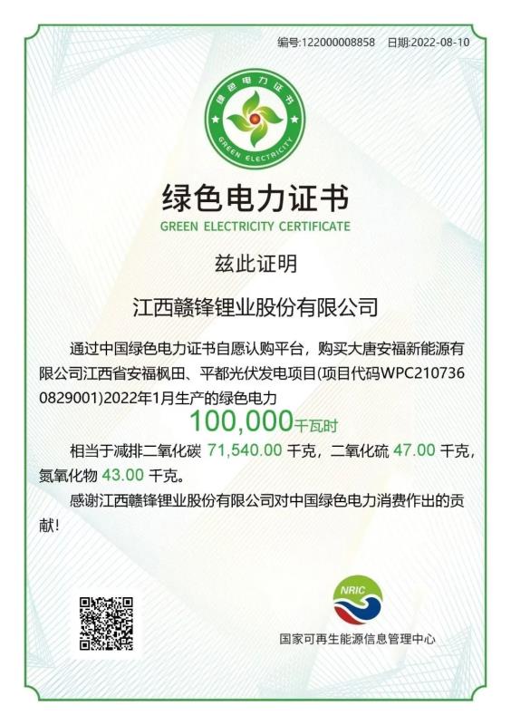 “贛鋒高度重視綠電比例的提升,我們已在工廠啟動(dòng)屋頂光伏建設(shè),并通過(guò)投資、合作等方式布局光伏發(fā)電、風(fēng)力發(fā)電項(xiàng)目”,贛鋒可持續(xù)發(fā)展執(zhí)行委員會(huì)負(fù)責(zé)人表示,贛鋒正在積極探索購(gòu)買(mǎi)綠證等方式提升綠電比例,“本次與大唐交易綠電證書(shū)是公司在綠證交易領(lǐng)域的首次嘗試,隨著公司對(duì)綠電需求的逐步增長(zhǎng),未來(lái)我們將采用更多、更靈活的方式,來(lái)提升綠電比例,踐行可持續(xù)發(fā)展理念?!?