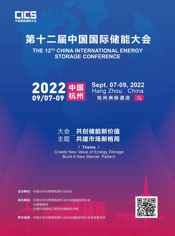 中國(guó)儲(chǔ)能網(wǎng)訊:“助力實(shí)現(xiàn)雙碳目標(biāo),賦能新經(jīng)濟(jì)發(fā)展!”由中國(guó)化學(xué)與物理電源行業(yè)協(xié)會(huì)主辦,中國(guó)化學(xué)與物理電源行業(yè)協(xié)會(huì)儲(chǔ)能應(yīng)用分會(huì)、中國(guó)科學(xué)院電工研究所儲(chǔ)能技術(shù)組和中國(guó)儲(chǔ)能網(wǎng)聯(lián)合承辦的CIES2022第十二屆中國(guó)國(guó)際儲(chǔ)能大會(huì)9月7-9日在杭州洲際酒店盛大開(kāi)幕。