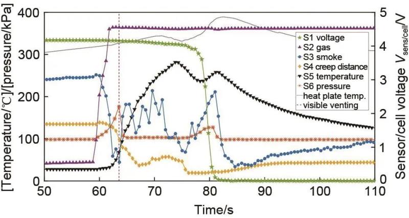 圖5 熱失控監(jiān)測(cè)預(yù)警信號(hào)變化過程