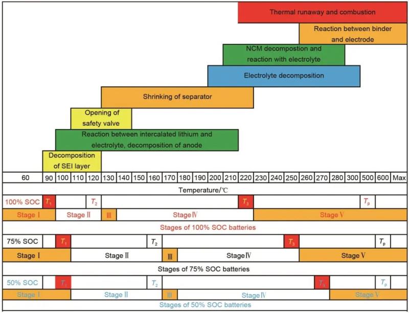 圖2 鋰離子電池?zé)崾Э胤磻?yīng)時(shí)序和溫度范圍