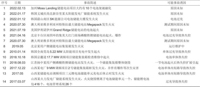 鋰離子電池目前被廣泛應(yīng)用于儲(chǔ)能領(lǐng)域,儲(chǔ)能電站火災(zāi)爆炸事故頻發(fā)引發(fā)了人們對(duì)電化學(xué)儲(chǔ)能電站安全性的極大關(guān)注。鋰離子電池是儲(chǔ)能電站電能的能量載體,其電極體系組分具有很高的熱危險(xiǎn)性,封裝成電池后其熱危險(xiǎn)性加劇。2021年4月,北京豐臺(tái)區(qū)儲(chǔ)能電站發(fā)生爆炸事故,造成兩名消防員死亡,使得公眾對(duì)儲(chǔ)能電站的應(yīng)用前景擔(dān)憂。近年來(lái)發(fā)生的儲(chǔ)能電站火災(zāi)爆炸事故如表1所示。