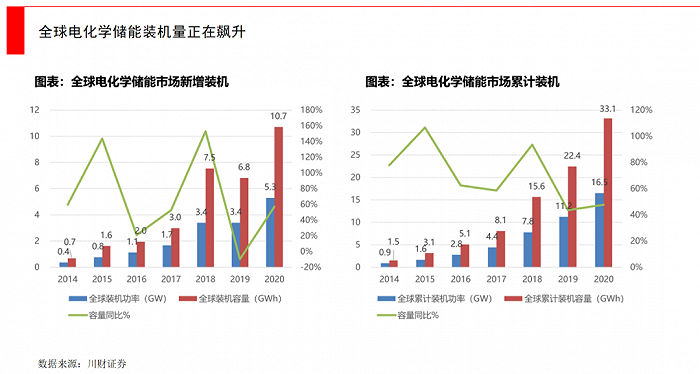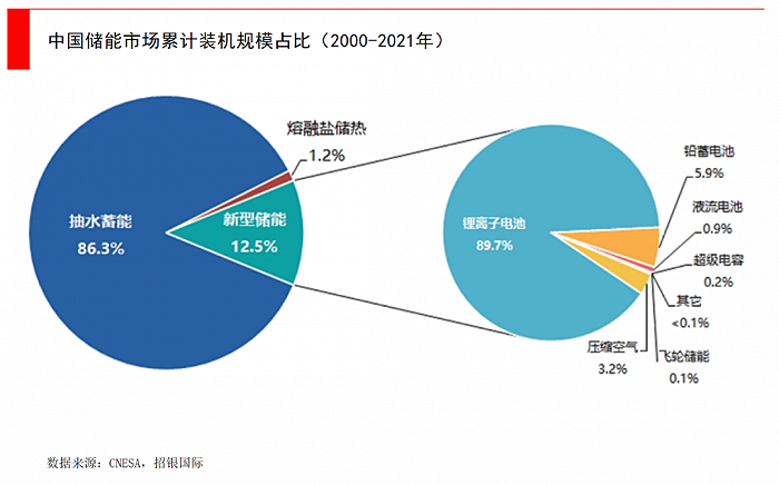 在中國(guó)碳中和的大目標(biāo)下,國(guó)家能源局給出了快速提升光伏、風(fēng)電等清潔能源的計(jì)劃,這就要求大規(guī)模、系統(tǒng)性的儲(chǔ)能配套。目前全球最多的傳統(tǒng)儲(chǔ)能手段就是抽水蓄能,而在新型儲(chǔ)能里,電化學(xué)儲(chǔ)能增速驚人。