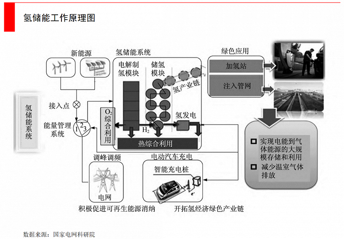 氫儲(chǔ)能:目前爭(zhēng)議還很大的一種技術(shù)路徑。工作邏輯是通過(guò)電解水制氫,將多余的電能轉(zhuǎn)化為氫能儲(chǔ)存起來(lái)。氫作為儲(chǔ)能介質(zhì),還可以直接用于燃料電池。但目前大規(guī)模制氫的技術(shù)還不夠成熟,能耗很高,以及配套的氫儲(chǔ)運(yùn)技術(shù)也不夠成熟,能利用氫能的場(chǎng)景也比較少。
