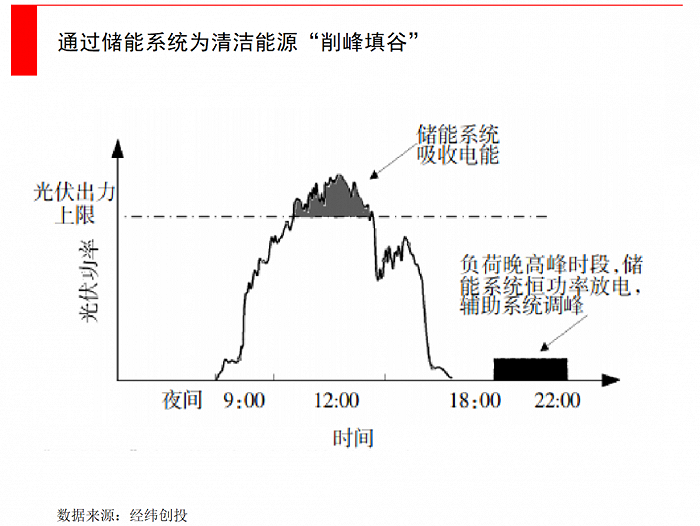 一方面,儲(chǔ)能可通過(guò)削峰填谷,解決峰谷時(shí)段發(fā)電量與用電負(fù)荷不匹配;另一方面,可以參與提供電力輔助服務(wù),解決風(fēng)光發(fā)電的波動(dòng)性導(dǎo)致的電網(wǎng)不穩(wěn)定。此外,靈活配置的儲(chǔ)能系統(tǒng),還可以增加電量本地消納,減少輸電系統(tǒng)的建設(shè)成本。