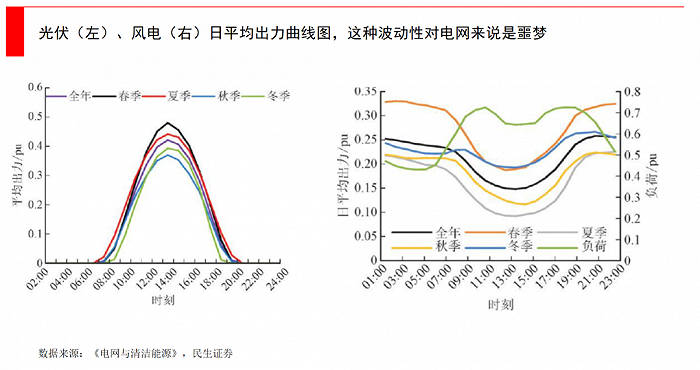 無(wú)論是風(fēng)電,還是光伏,都非常依賴天氣本身。比如光伏往往在正午達(dá)到高峰,到了晚上就無(wú)電可用,但晚上恰恰是用電高峰,就不得不用其他能源來(lái)調(diào)峰,對(duì)電網(wǎng)的負(fù)荷極大。