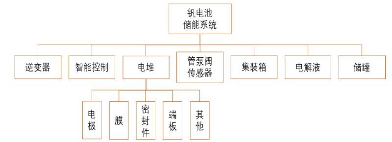 電堆、電解液為釩電池核心,成本占比最高。