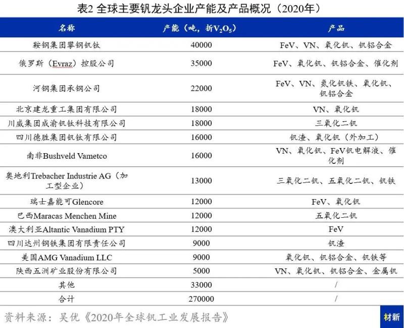 攀鋼釩鈦產(chǎn)能第一,釩資源企業(yè)積極布局釩電池領(lǐng)域。