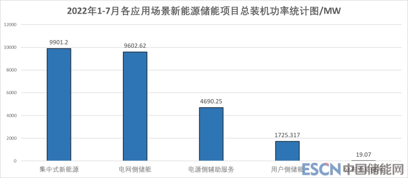 2021年1-7月國內(nèi)新增新型儲能(含規(guī)劃、在建和運行)項目個數(shù)266個,儲能規(guī)模11.82GW,其中新能源發(fā)電側(cè)裝機超過50%。對比來看,2022年1-7月新型儲能項目投運、擬在建、建設(shè)中的項目總裝機功率同比增長24.94%,而與去年電源側(cè)輔助服務(wù)占據(jù)主要比重的情況不同,今年集中式新能源項目以及電網(wǎng)側(cè)項目總裝機功率旗鼓相當(dāng),二者占比近75%,用戶側(cè)儲能在裝機功率比例上略有下降,而分布式及微網(wǎng)新能源項目占比依然很低,項目裝機容量上比重很輕,發(fā)展任重道遠,這與當(dāng)下的鄉(xiāng)村振興政策落實不到位亦有關(guān)。
