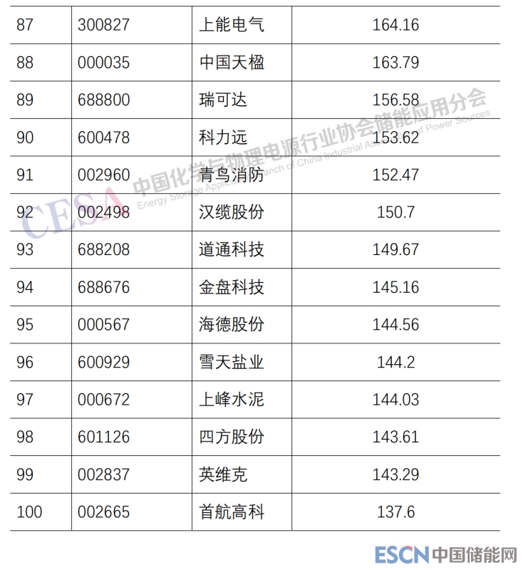 中國儲能網(wǎng)訊:2022年依然是儲能上市公司狂歡的一年,儲能向細(xì)分賽道處漫溯,可謂是精彩紛呈。一方面儲能頂層政策助力加碼,一方面是資本狂追儲能賽道。從中國化學(xué)與物理電源行業(yè)協(xié)會儲能應(yīng)用分會政策研究中心觀察的260余家儲能上市公司來看,儲能產(chǎn)業(yè)鏈有更全面的覆蓋,除了電化學(xué)儲能涉及的電池、BMS、PCS、EMS、EPC、系統(tǒng)集成、溫控、安全消防、連接、結(jié)構(gòu)件等外,上游的原材料和下游的儲能電站開發(fā)運維也得到延伸,而其他儲能技術(shù)如飛輪儲能、壓縮空氣儲能、抽水蓄能、液流電池、鈉離子電池、氫儲能、虛擬電廠、熔鹽儲能等都成為二級市場資本角逐的對象,儲能概念股甚至成為網(wǎng)紅,而儲能行業(yè)融資事件也不斷發(fā)酵成形。本文統(tǒng)計了儲能上市公司市值TOP100,最高的上萬億元,最低的也達(dá)百億元以上。需要說明的是,這些儲能上市公司都有實質(zhì)性儲能業(yè)務(wù)或已經(jīng)布局儲能、準(zhǔn)備入局,并非是炒作的純儲能概念股。另外,上游為儲能提供原材料的上市公司基本未納入其中。