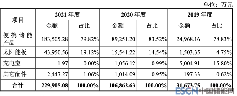 從收入增速來(lái)看,2018-2021年銷(xiāo)售金額年均復(fù)合增速達(dá)273.5%,其中便攜式儲(chǔ)能業(yè)務(wù)做出的突出貢獻(xiàn)。從 2018 年的 0.64 億元,到 2020 年的 8.93 億元,儲(chǔ)能電源板塊的營(yíng)收翻了近 14 倍。到了2021年,便攜儲(chǔ)能業(yè)務(wù)的銷(xiāo)售金額達(dá)到18.35億元,成為公司的最核心業(yè)務(wù)。具體可參見(jiàn)下圖