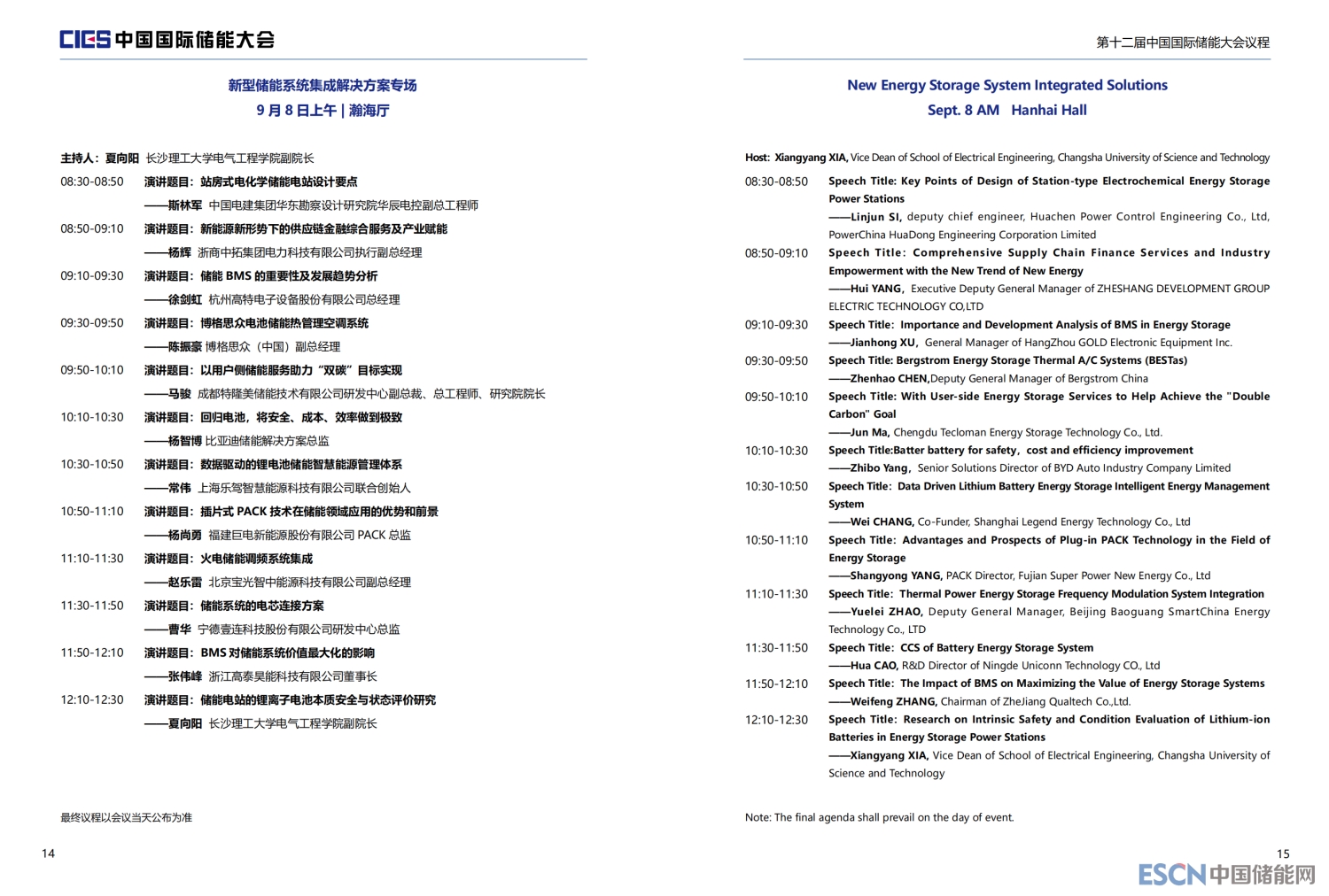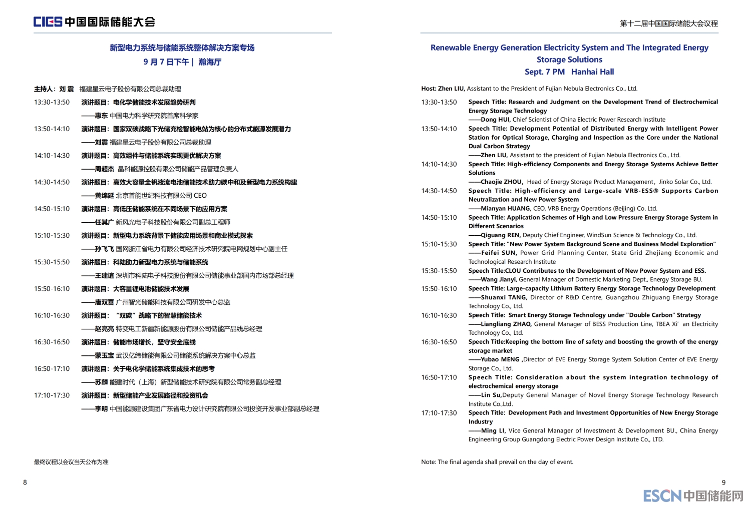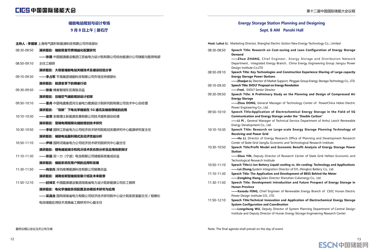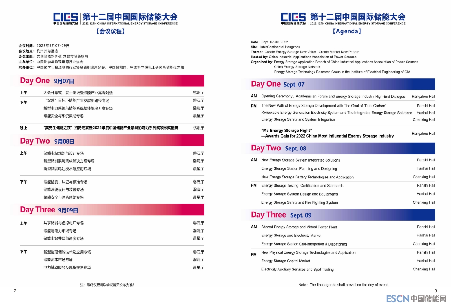 本次大會將安排有大會開幕式、院士專題報告及儲能產業(yè)高峰對話、“雙碳”目標下儲能產業(yè)發(fā)展新路徑、新型電力系統與儲能系統整體解決方案、儲能安全與系統集成、新型儲能系統集成解決方案、儲能電站規(guī)劃與設計、新型儲能電池技術與應用、儲能檢測、認證與標準、儲能安全與消防系統、儲能系統設計與裝置、新型物理儲能技術及應用、儲能電站并網與調度、儲能與電力市場、儲能資本市場、共享儲能與虛擬電廠、電力輔助服務及現貨交易等16個專場論壇。
