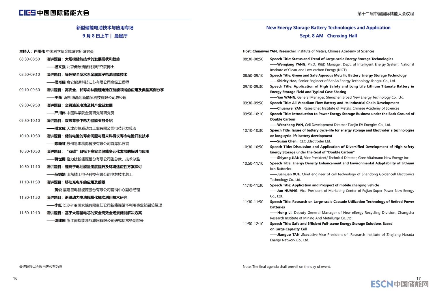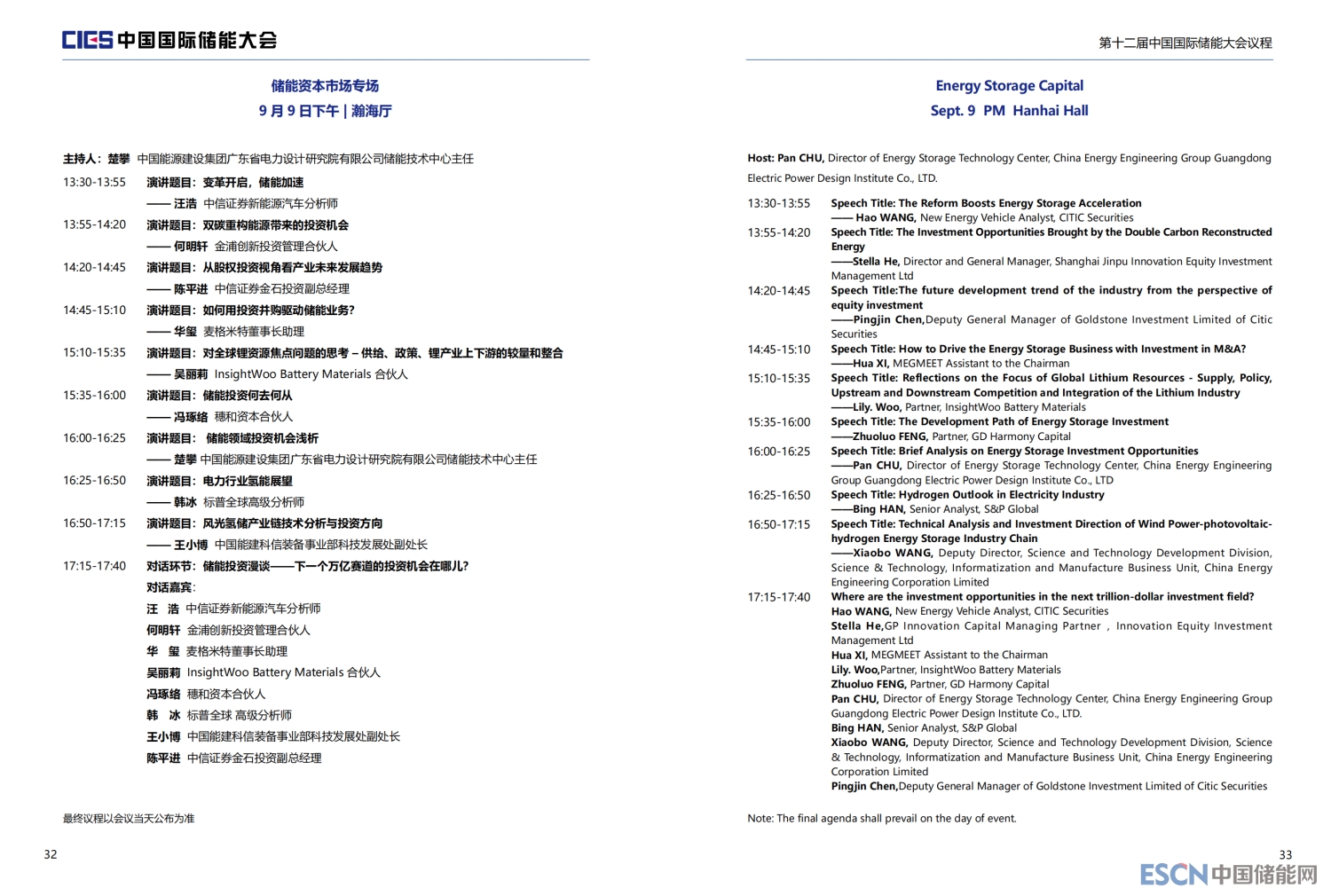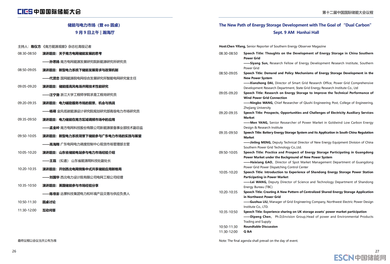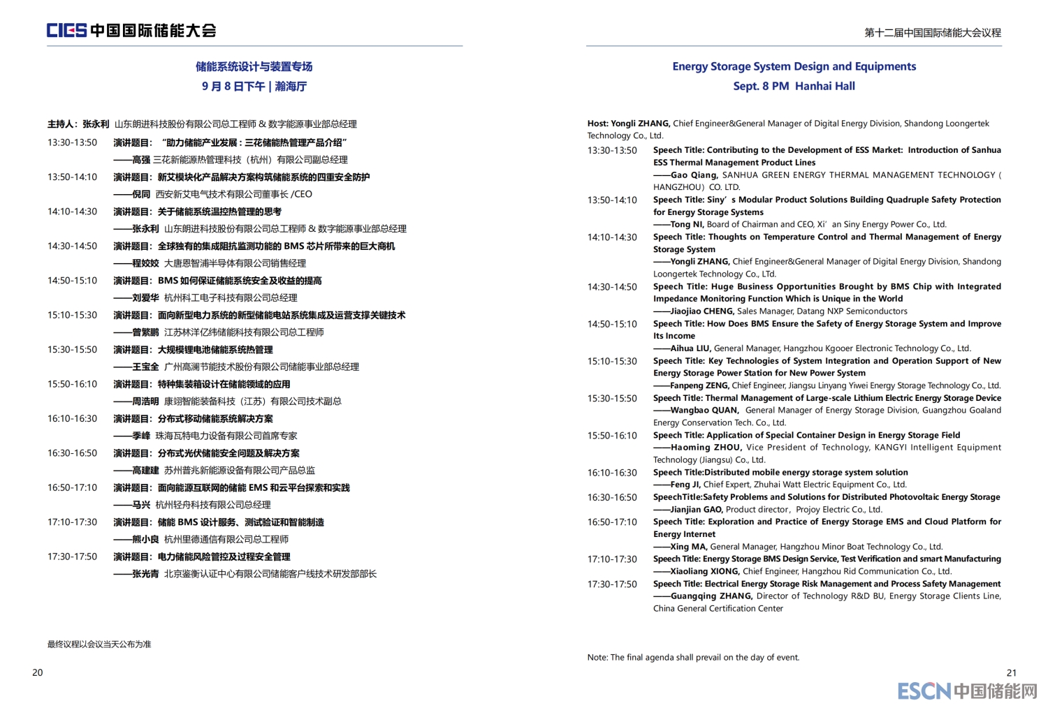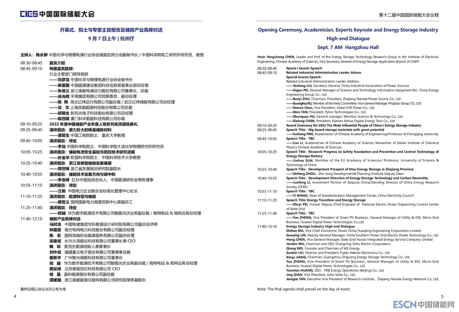 本次大會將安排有大會開幕式、院士專題報告及儲能產業(yè)高峰對話、“雙碳”目標下儲能產業(yè)發(fā)展新路徑、新型電力系統與儲能系統整體解決方案、儲能安全與系統集成、新型儲能系統集成解決方案、儲能電站規(guī)劃與設計、新型儲能電池技術與應用、儲能檢測、認證與標準、儲能安全與消防系統、儲能系統設計與裝置、新型物理儲能技術及應用、儲能電站并網與調度、儲能與電力市場、儲能資本市場、共享儲能與虛擬電廠、電力輔助服務及現貨交易等16個專場論壇。