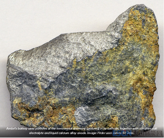 Ambri公司的電池在其陰極中使用金屬銻以及熔鹽電解質和液態(tài)鈣合金陽極
