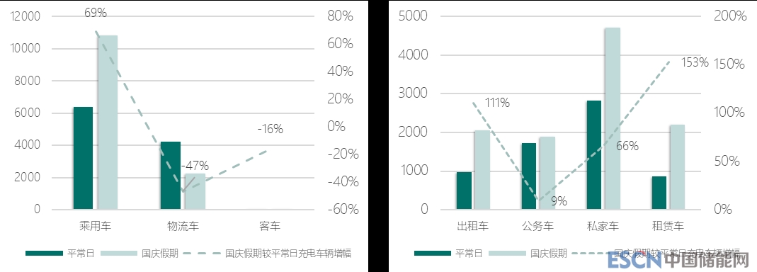 圖4 高速充電站2021年國慶假期和平常日充電車輛類型對比