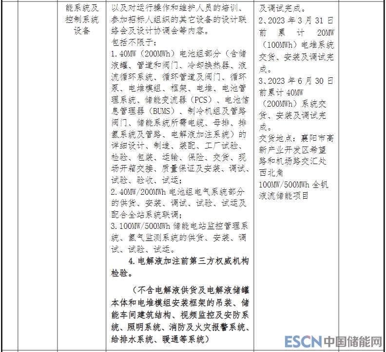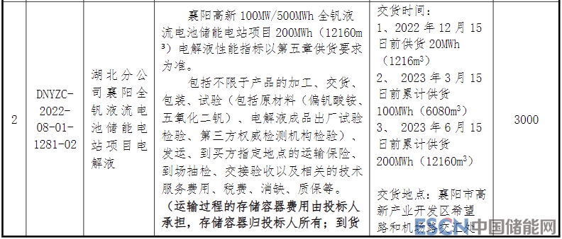(湖北分公司襄陽(yáng)全釩液流電池儲(chǔ)能電站項(xiàng)目?jī)?chǔ)能系統(tǒng)及控制系統(tǒng)設(shè)備、電解液采購(gòu))