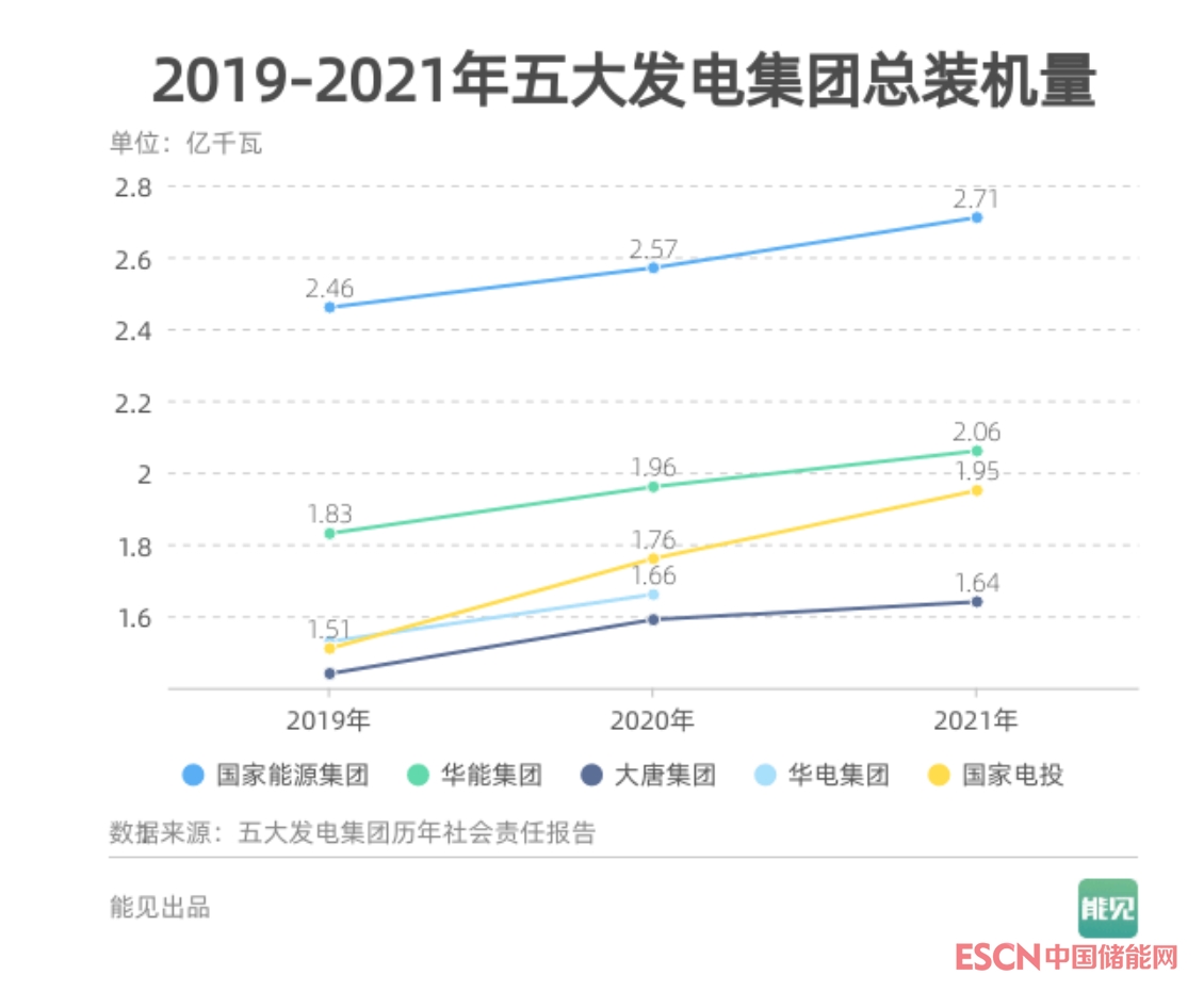 中國儲能網(wǎng)訊:近日,五大發(fā)電集團陸續(xù)發(fā)布2021年度社會責(zé)任報告。今天,“下笨功夫的能見”就為大家梳理一下各家企業(yè)近三年裝機量變化圖。