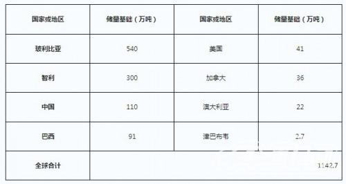 全球鋰礦資源基礎(chǔ)儲(chǔ)量分布