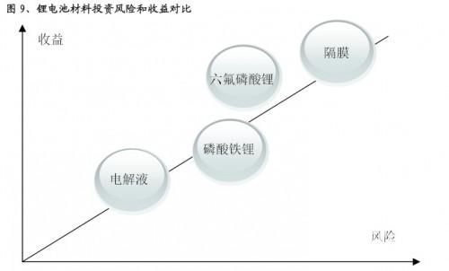 另外,從投資風(fēng)險(xiǎn)和收益對(duì)比角度來(lái)看,目前隔膜制造商的利潤(rùn)最高,但是其前期用地研發(fā)的投入也相當(dāng)高,由于技術(shù)難度大因此風(fēng)險(xiǎn)也偏高。