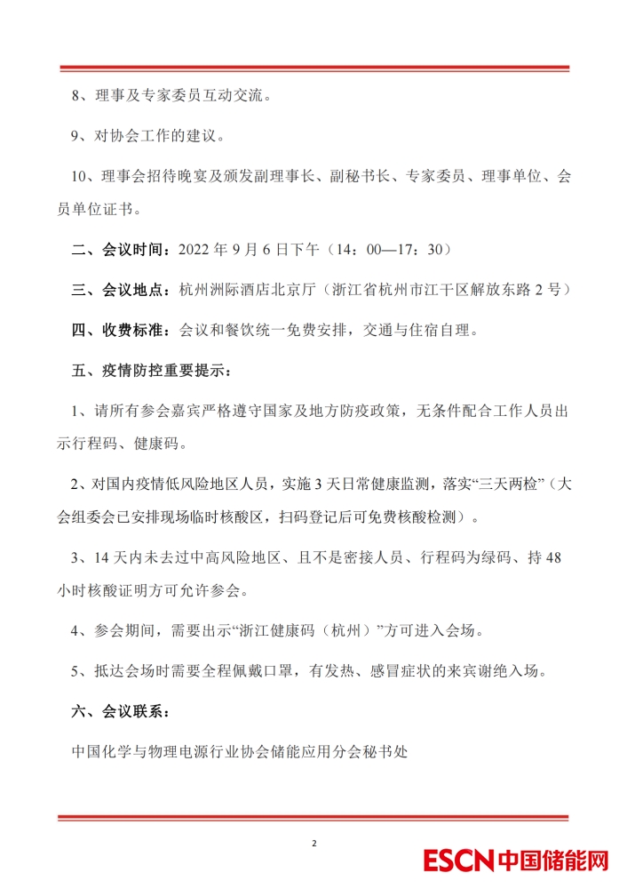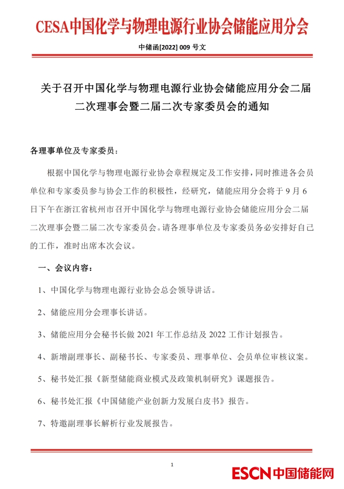 關(guān)于召開中國化學(xué)與物理電源行業(yè)協(xié)會(huì)儲(chǔ)能應(yīng)用分會(huì)二屆二次理事會(huì)暨二屆二次專家委員會(huì)的通知
