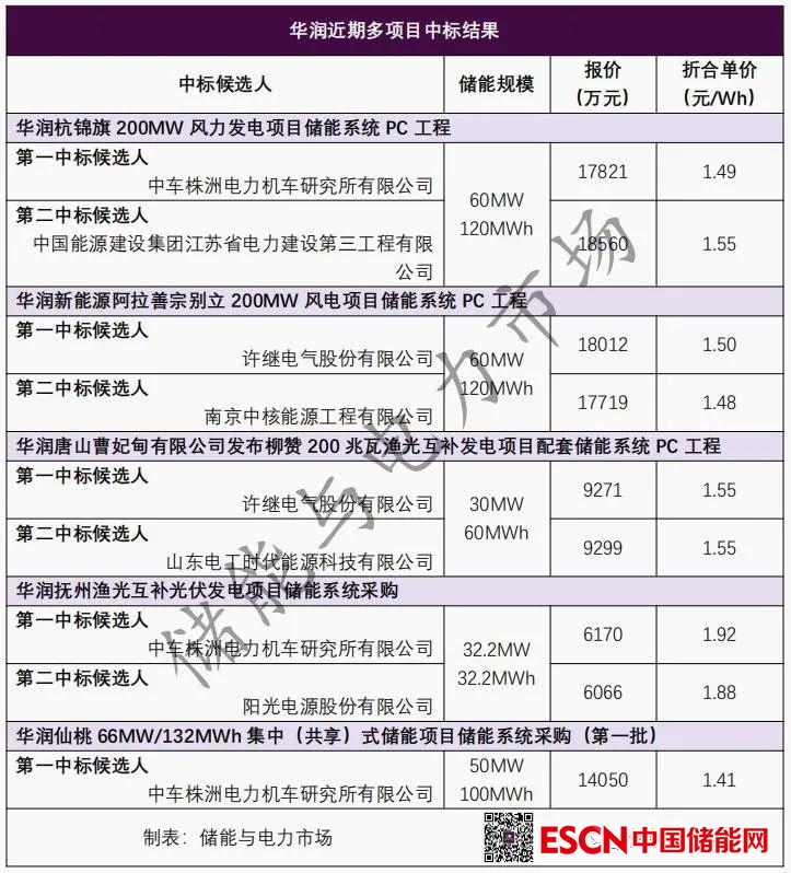 表:華潤(rùn)8月份儲(chǔ)能項(xiàng)目中標(biāo)情況